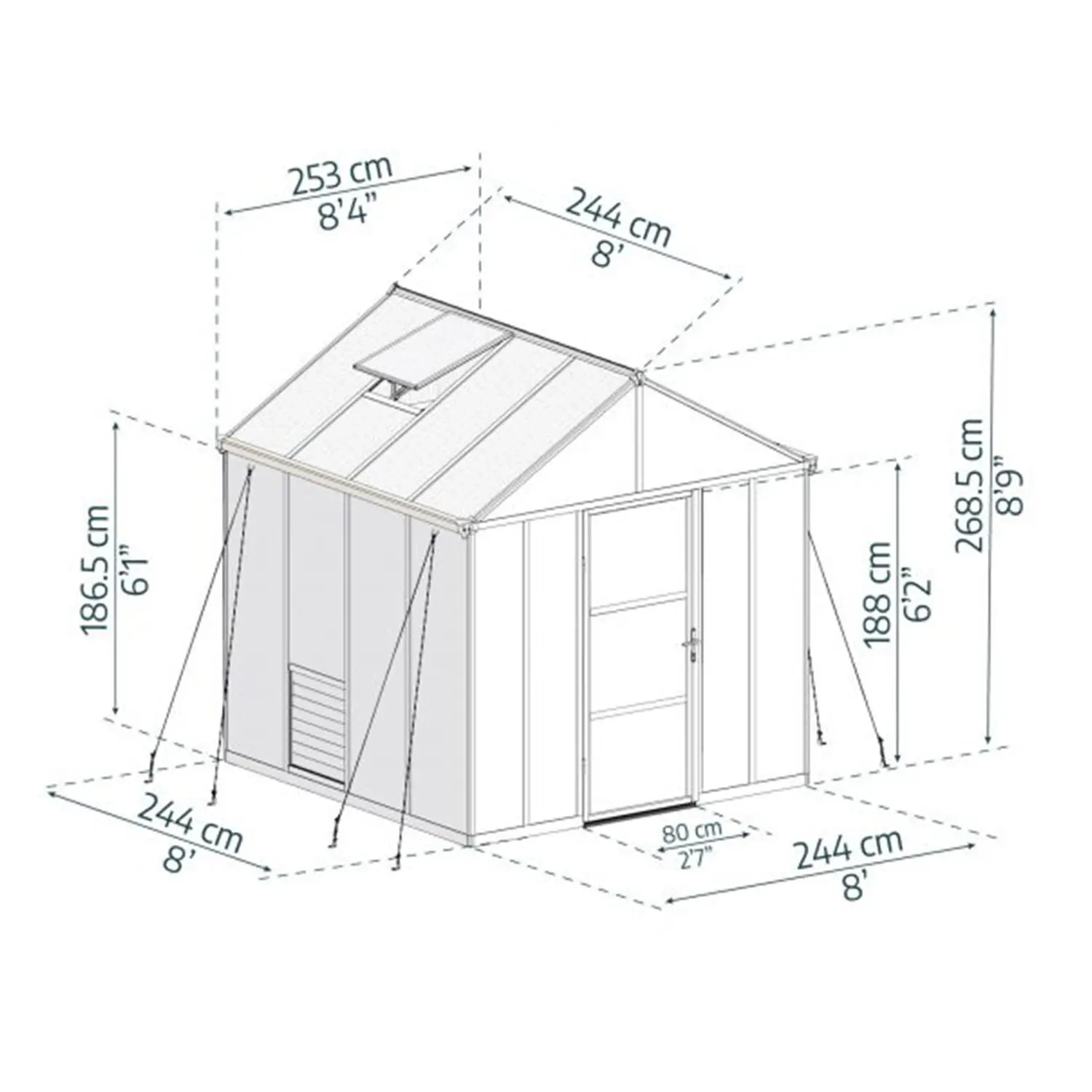 Glory 8 ft. x 8 ft. Greenhouse Kit - Grey Structure & Multiwall Panels